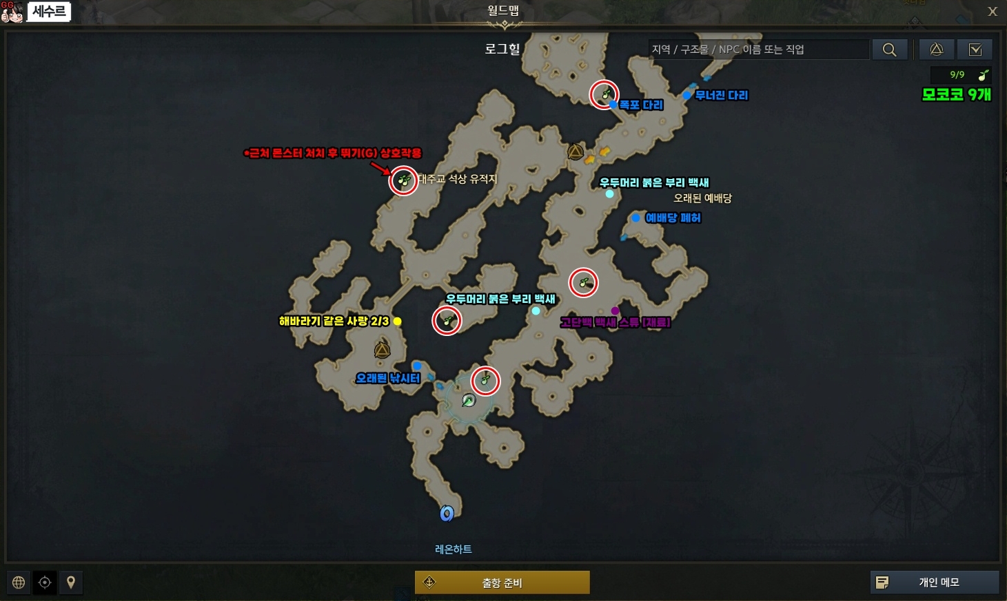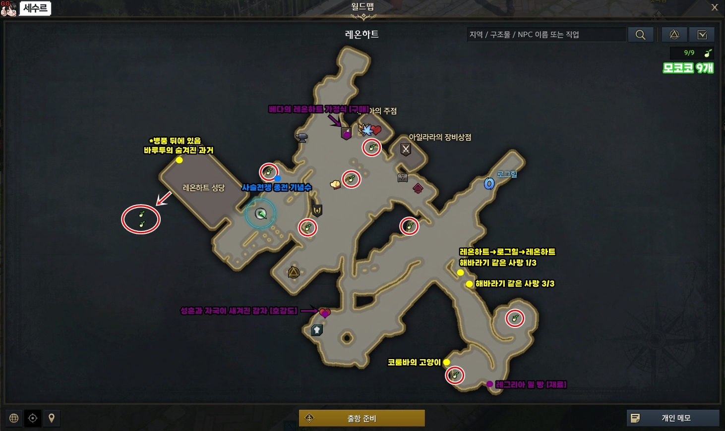 2023년 07월 기준 최신판으로 모험의 서와 아르테미스 모코코 위치를 올리네요.