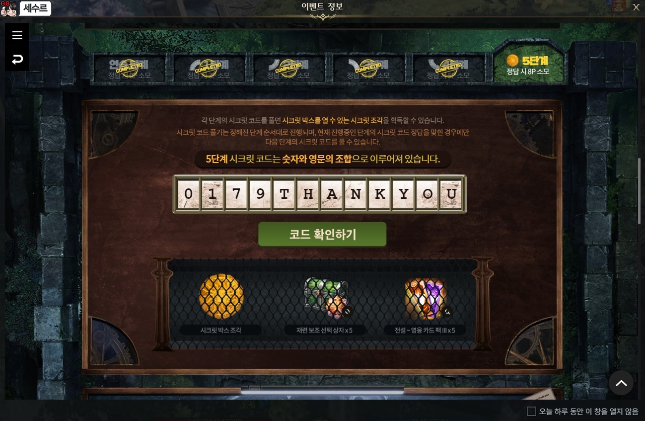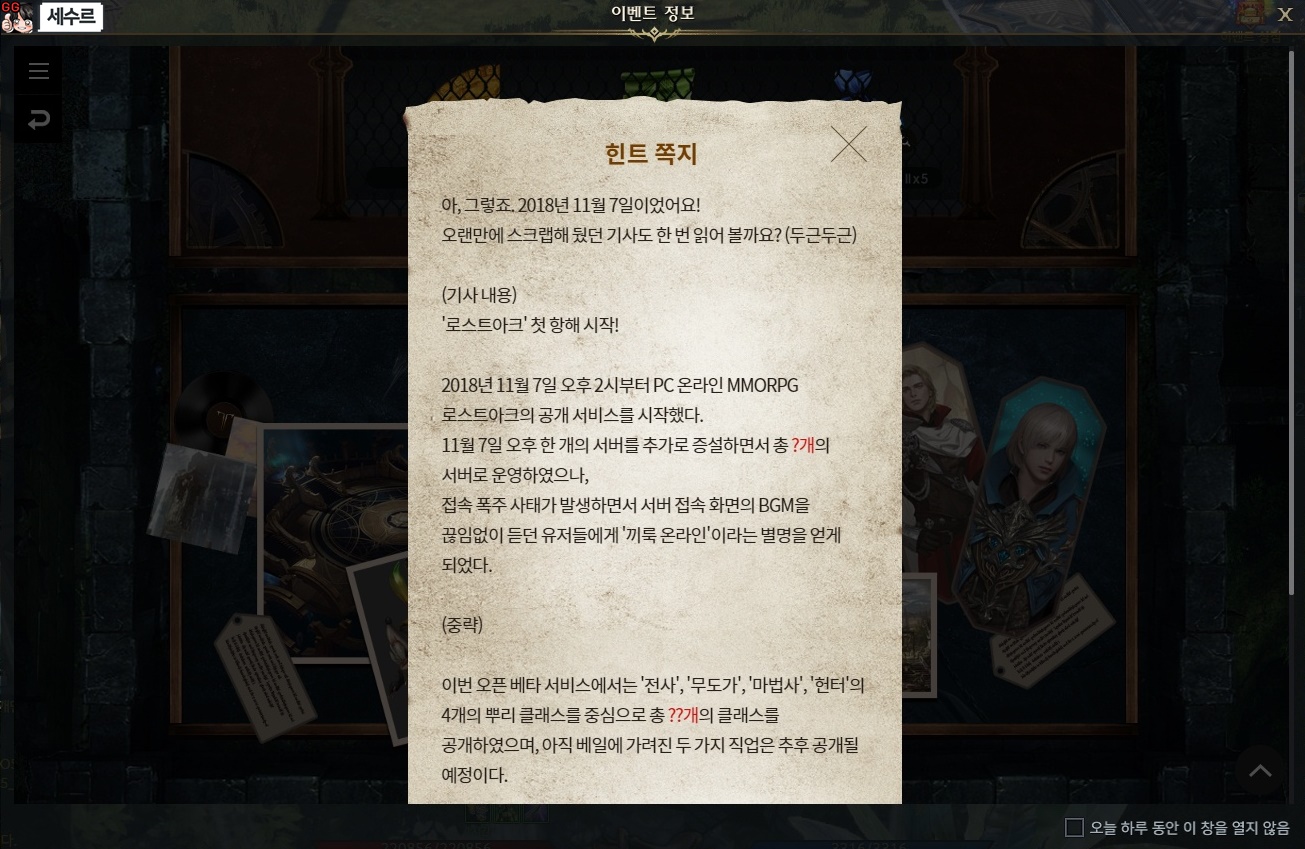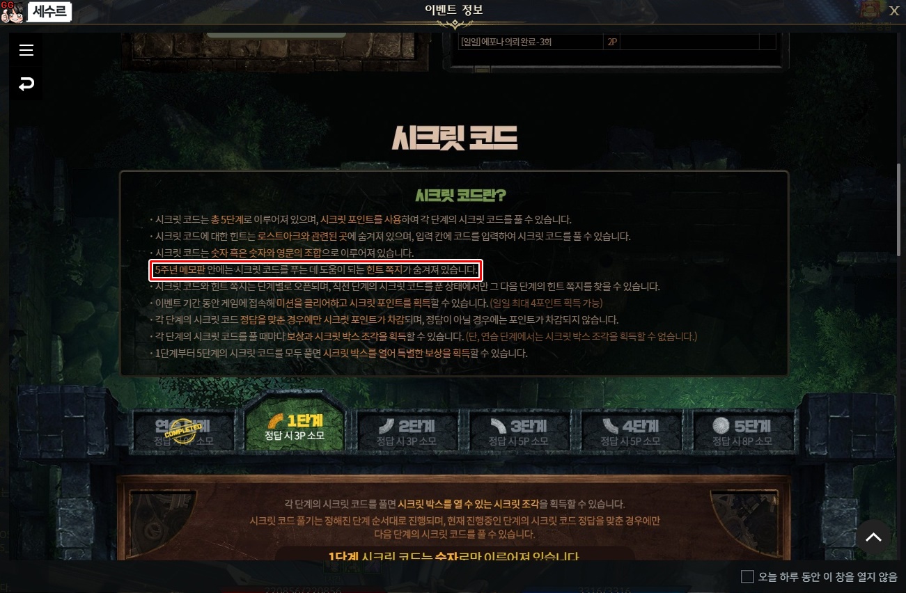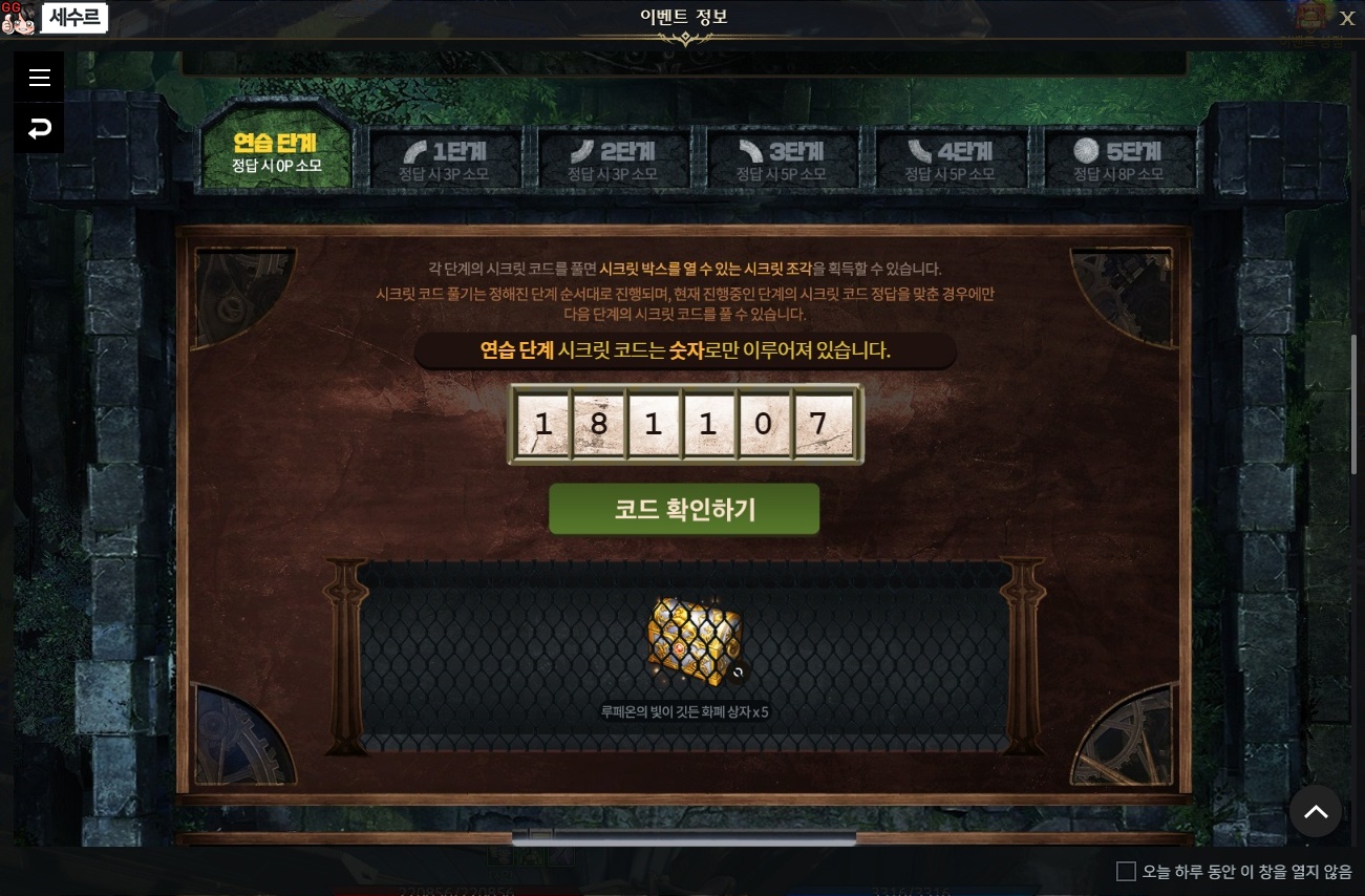 시크릿 코드 연습 단계 181107 - 로아 OBT 시작 날짜입니다.