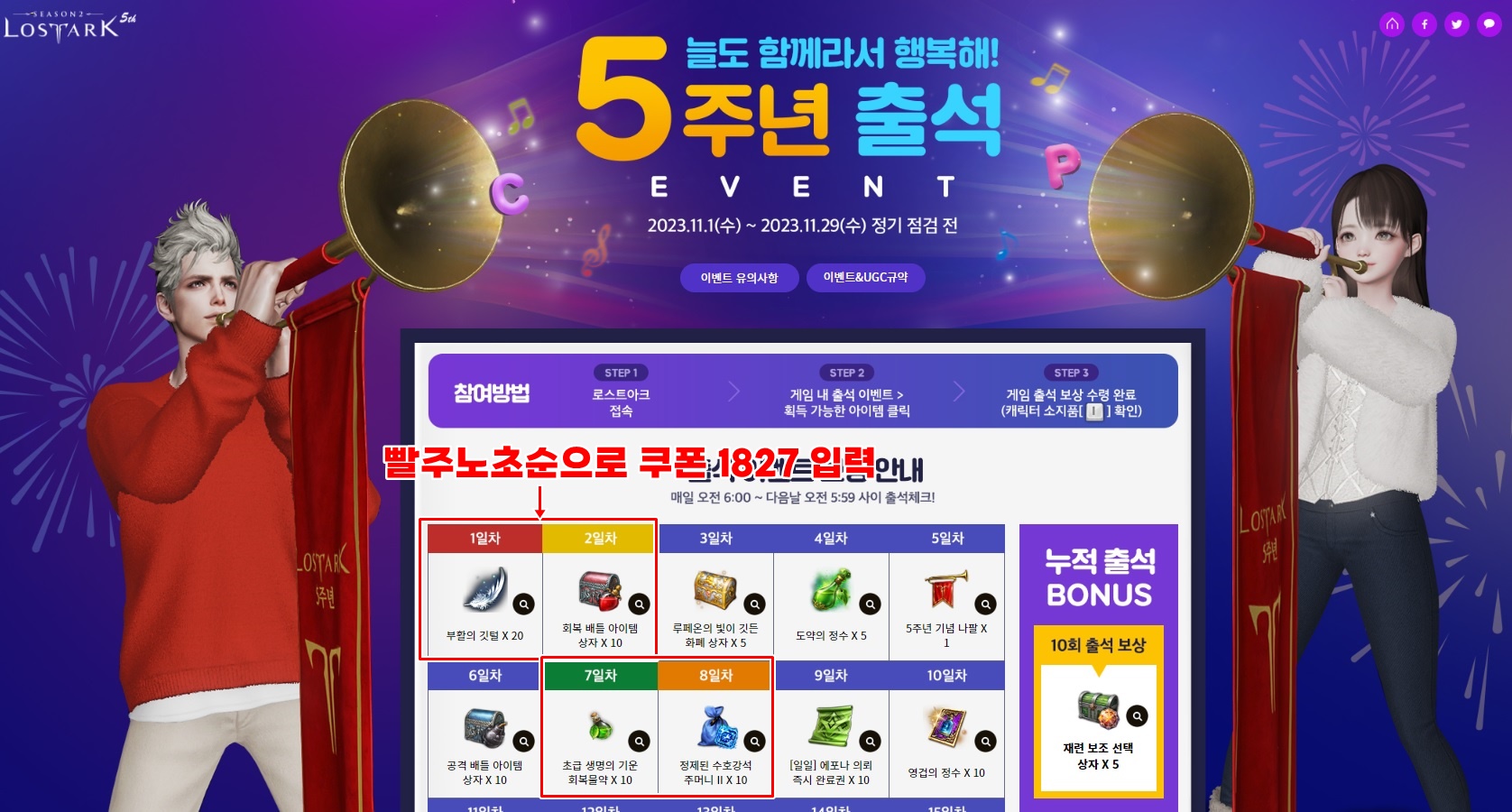 | 로스트아크 5주년 쿠폰 코드 및 구성품 (0) | 2023.11.07 |