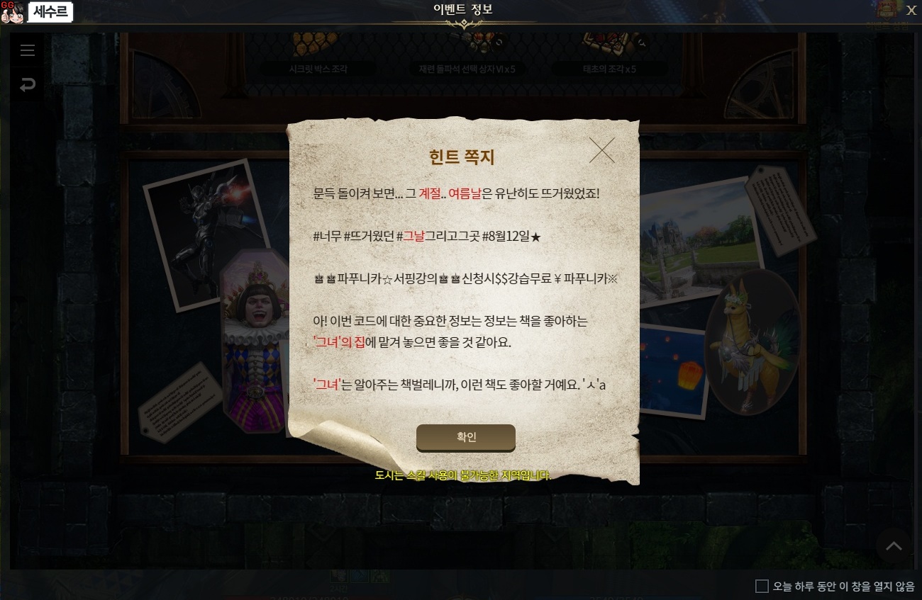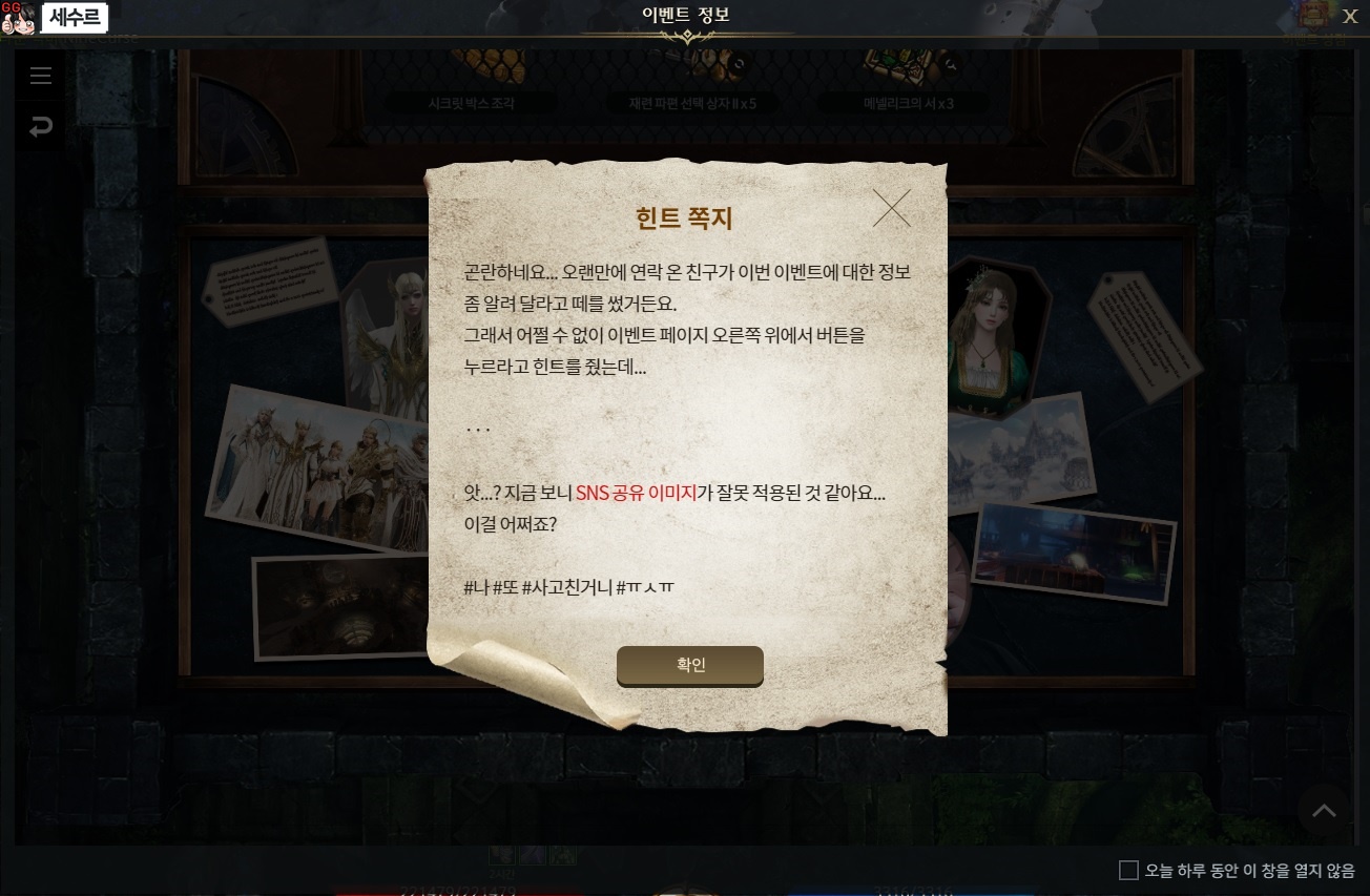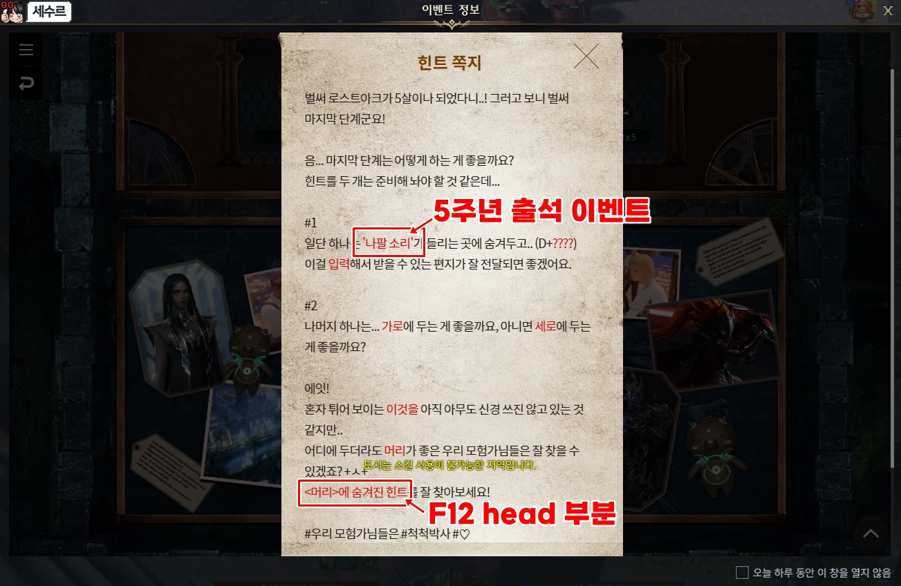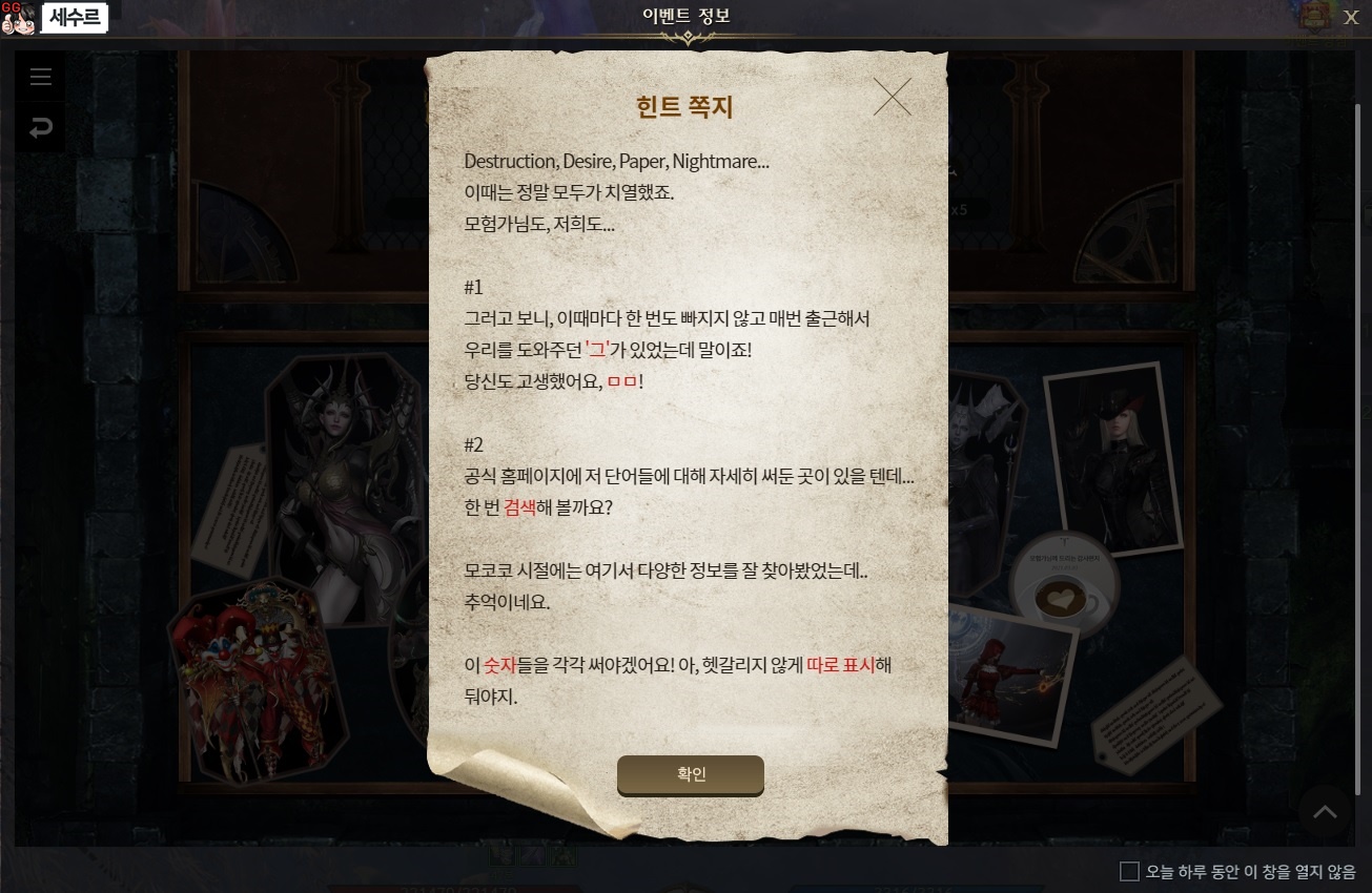 힌트 쪽지 찾는데 애먹었습니다.. 노안 이슈인가