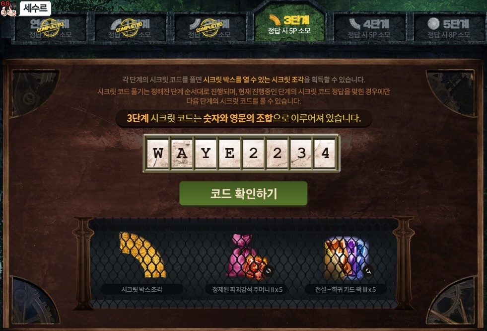 시크릿 코드 3단계 정답 waye2234 - 그러고 보니, 이때마다 한 번도 빠지지 않고 매번 출근해서 우리를 도와주던 '그'는 웨이(Waye), 군단장 이야기로 추정해서 군단장 콘텐츠에 레이드 총 관문수