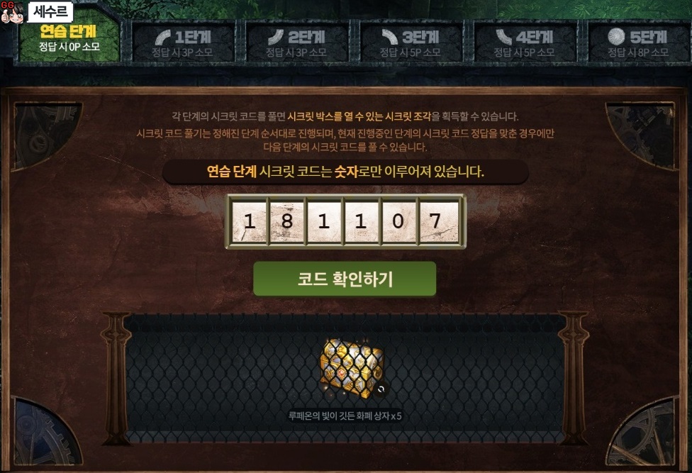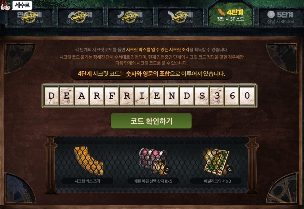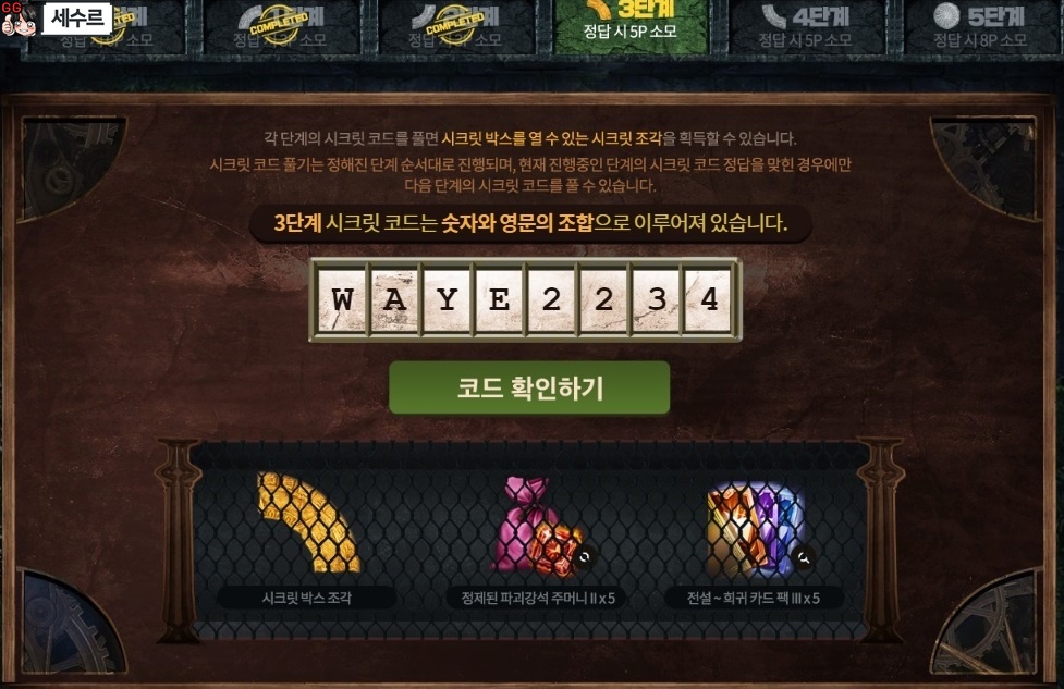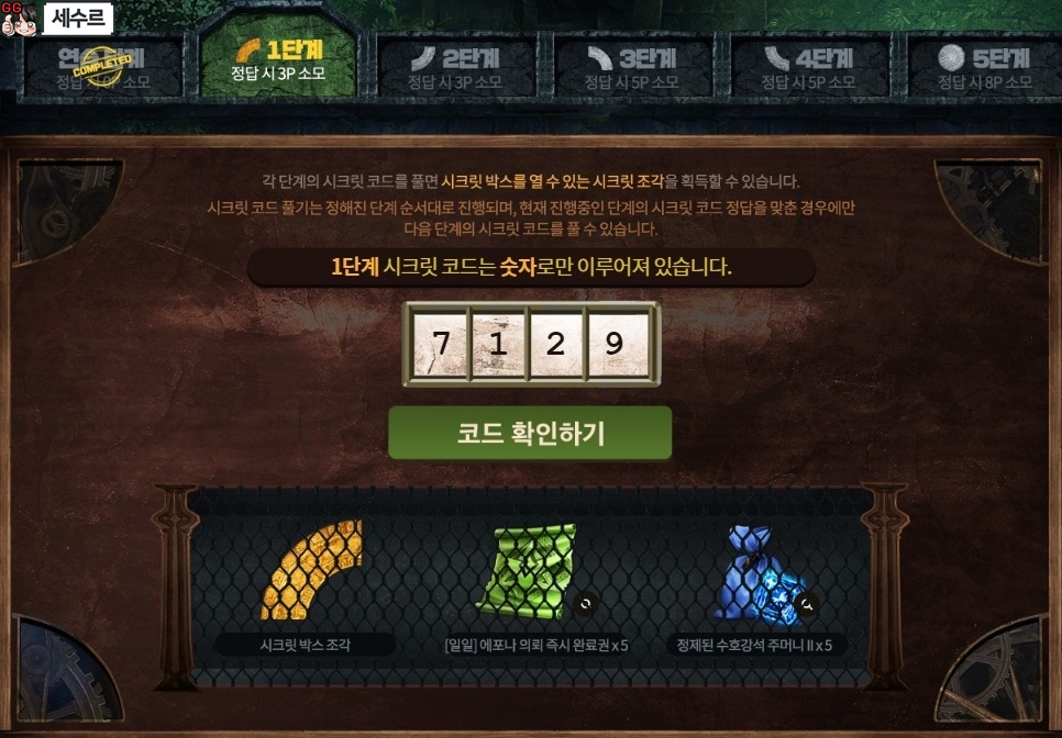 시크릿 코드 단계별 보상과 최종 보상입니다.
