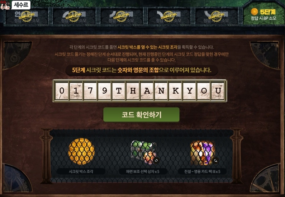 시크릿 코드 5단계 정답 - 0179THANKYOU
