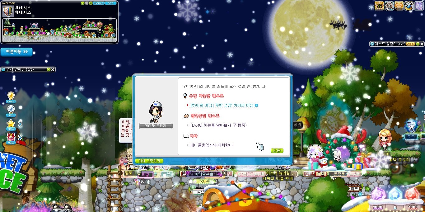 각 마을에 있는 메이플 운영자 NPC에게 가서 메이플운영자와 대화한다를 클릭합니다.