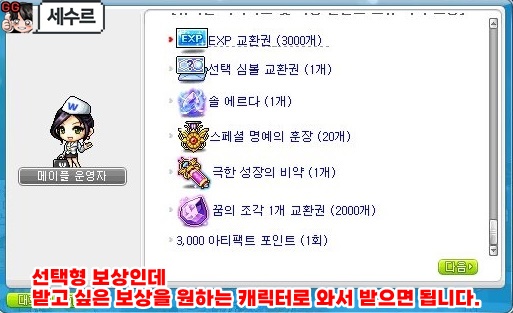 이렇게 보상 종류가 뜹니다.