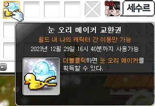 눈 오리 메이커 교환권을 얻으면 월드 내 나의 캐릭터터 간 이동 가능하니 사용할 캐릭 정하셔서 쓰세요!