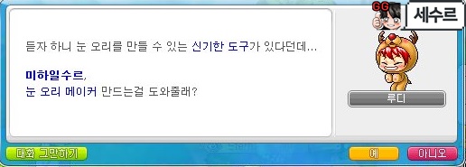 왼쪽 별 모양 클릭하시면 [눈 오리 메이커] 루디의 부탁 퀘스트를 받아주세요.