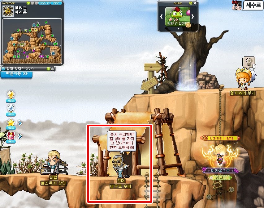 다크 엑스텀프를 잡아서 도끼 5개를 얻은 뒤 다시 페리온 NPC 선더에게 갑니다.