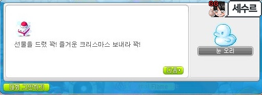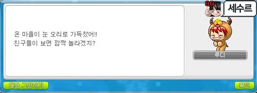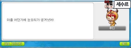 계속 말을 걸다보면 온 마을이 눈 오리로 가득 찼다고 합니다. 이 문구가 나오면 헤네시스 NPC 운영자 아래로 갑니다.
